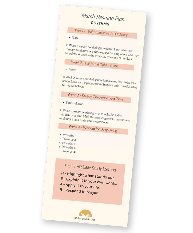 A monthly Scripture plan to help you return to God’s Word and form daily rhythms.